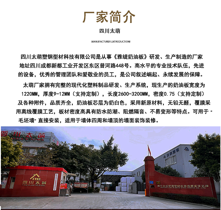 四川太萌塑鋼型材科技有限公司位于四川成都新都工業(yè)開發(fā)區(qū)東區(qū)普河路448號,自有占地30余畝,注冊資本3600萬元,20余年專門從事PVC-U門窗塑鋼型材、年生產(chǎn)能力20000余噸,年產(chǎn)300萬平米塑鋼門窗型材,現(xiàn)主要經(jīng)營"太萌""好望""蓉城"品牌。高水平的專業(yè)技術(shù)隊伍,先進(jìn)的設(shè)備,優(yōu)秀的管理團(tuán)隊和愛崗敬業(yè)的員工,是公司迅速崛起,永續(xù)發(fā)展的保障。